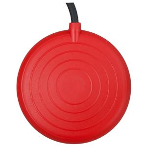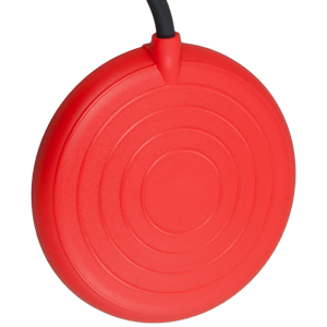 Blasebalg für Pneumatiktaster mit softer Seite zum Auslösen und fester Grundplatte für Tisch-, Wand- oder Bodenbetrieb. * schwarzer Schlauf ca. 2m * Auslöser Farbe: rot * Maße: ca 95mm Durchmesser.