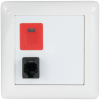 Dieser Taster zur Wandmontage bietet einen Ruftaster (rot) und einen Steckkontakt zur Aufnahme von Bett-Tastern, Birn-Tastern oder Drittgeräten.